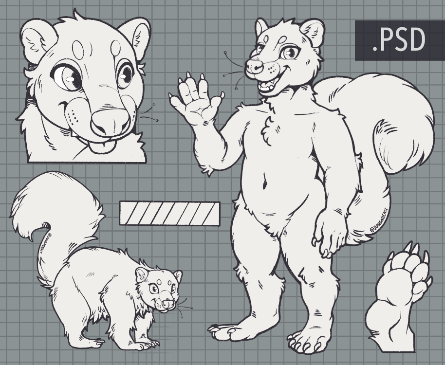You're purchasing a .zip folder with pre-filled and lines-only .PSDs of the base shown.